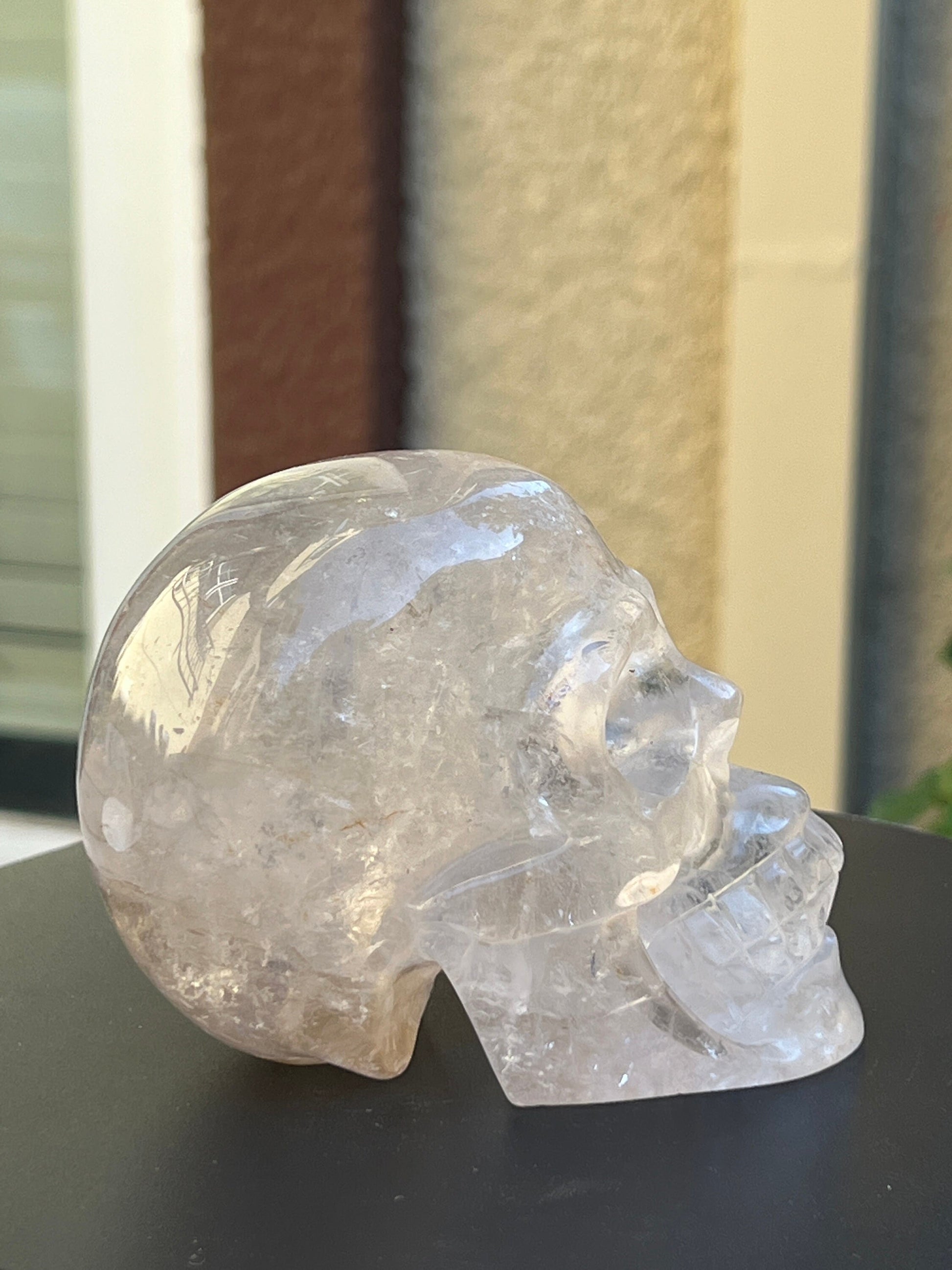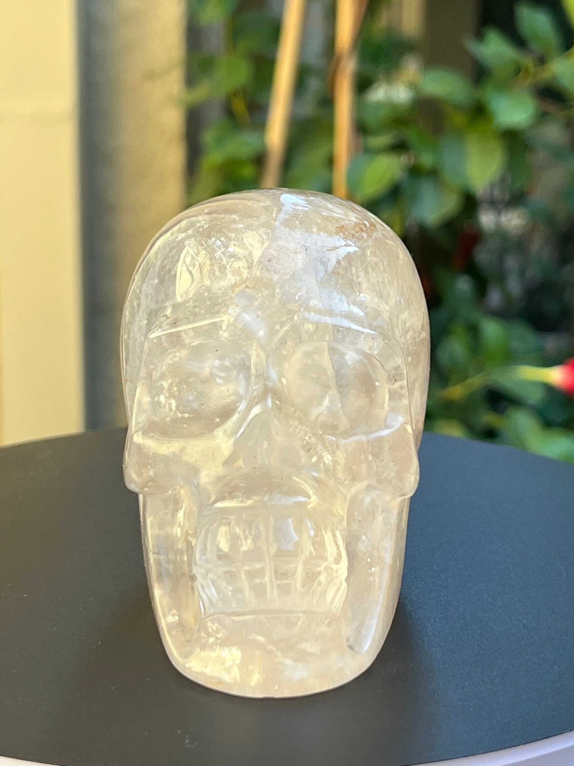 This is a beautiful high quality clear quartz skull from brazil. This also has some hematite inclusion.