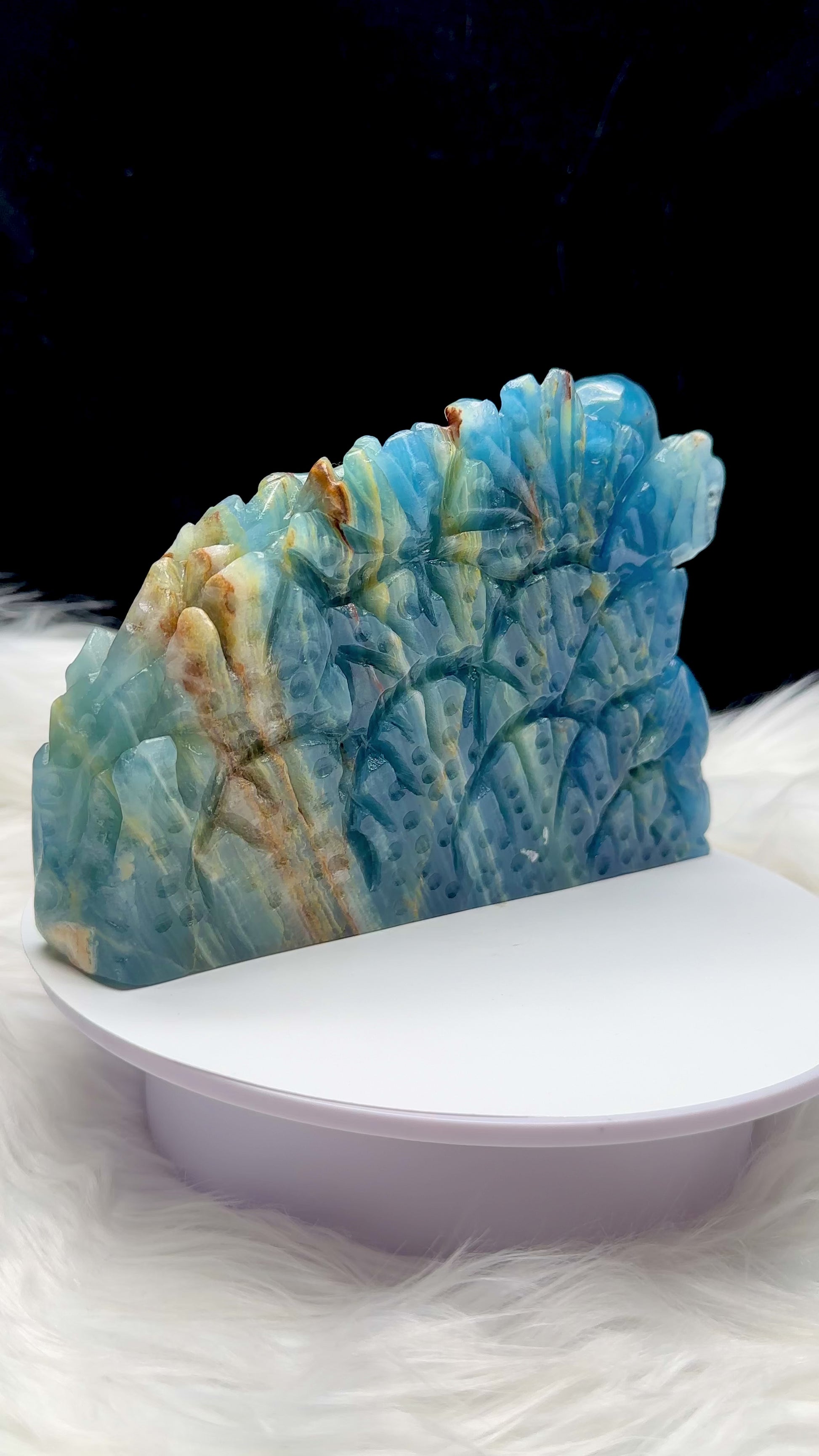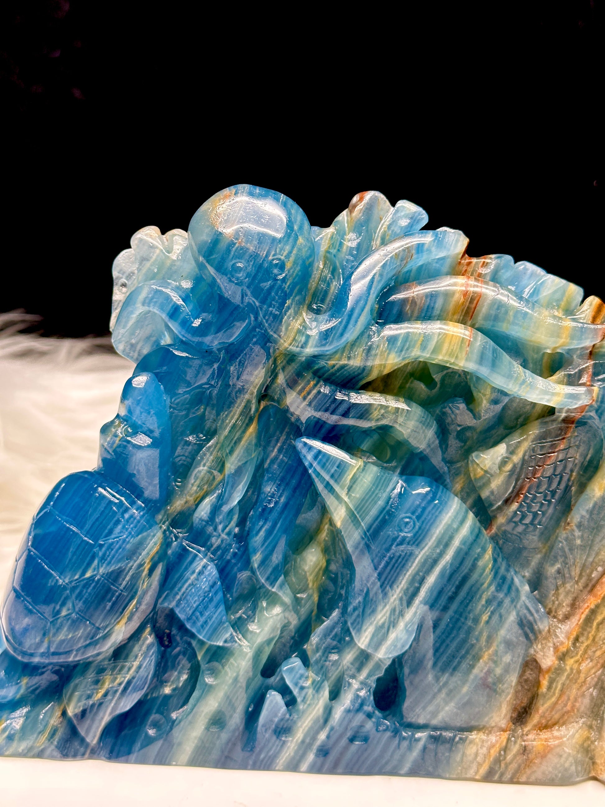 Blue Onyx Crystal Seaworld Carving | 1.2 kg | 5 Inches Tall | Unique Ocean-Inspired Crystal Sculpture