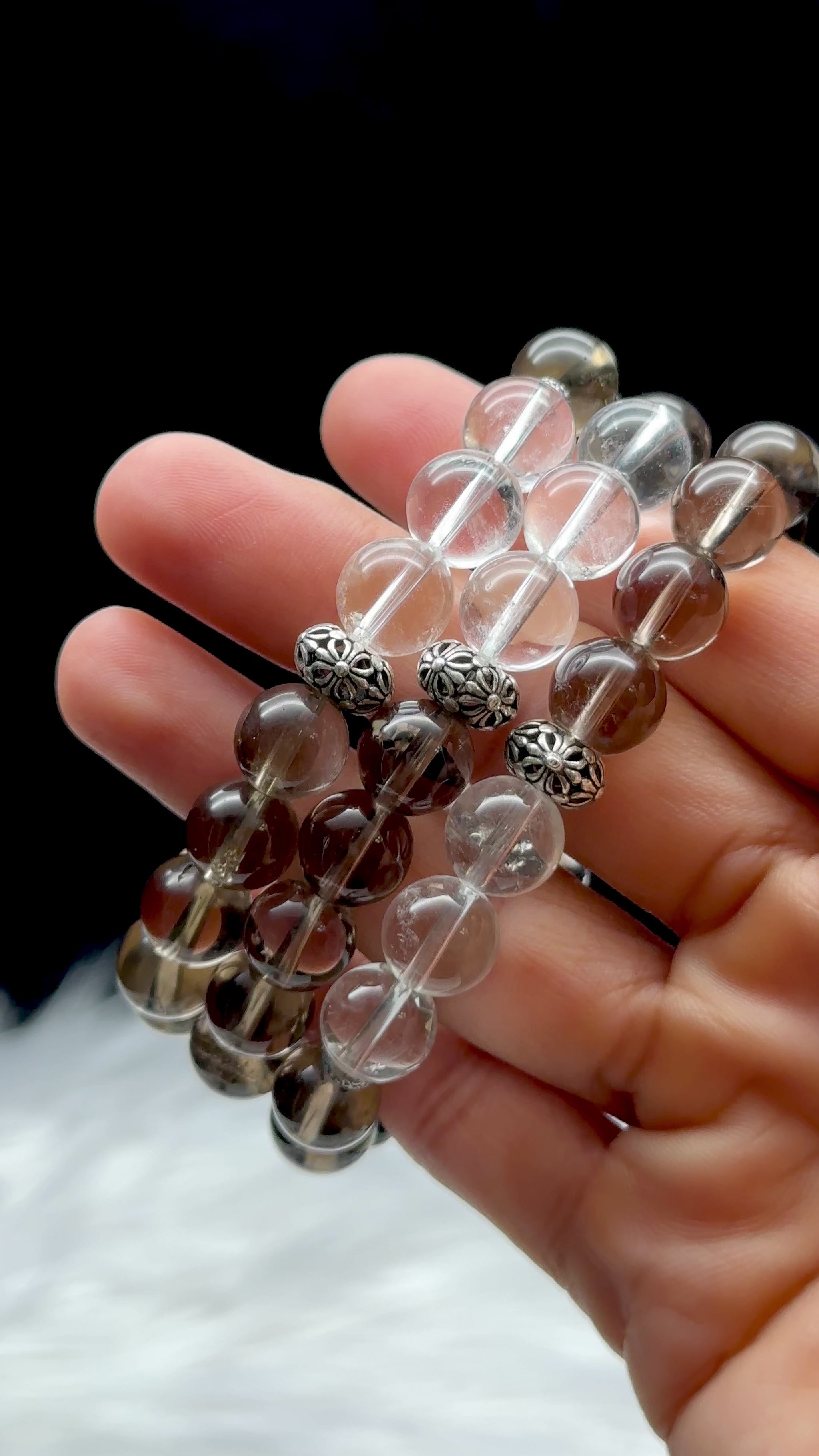 ✔ Handmade with high-quality Clear Quartz & Smoky Quartz beads (9.5mm)