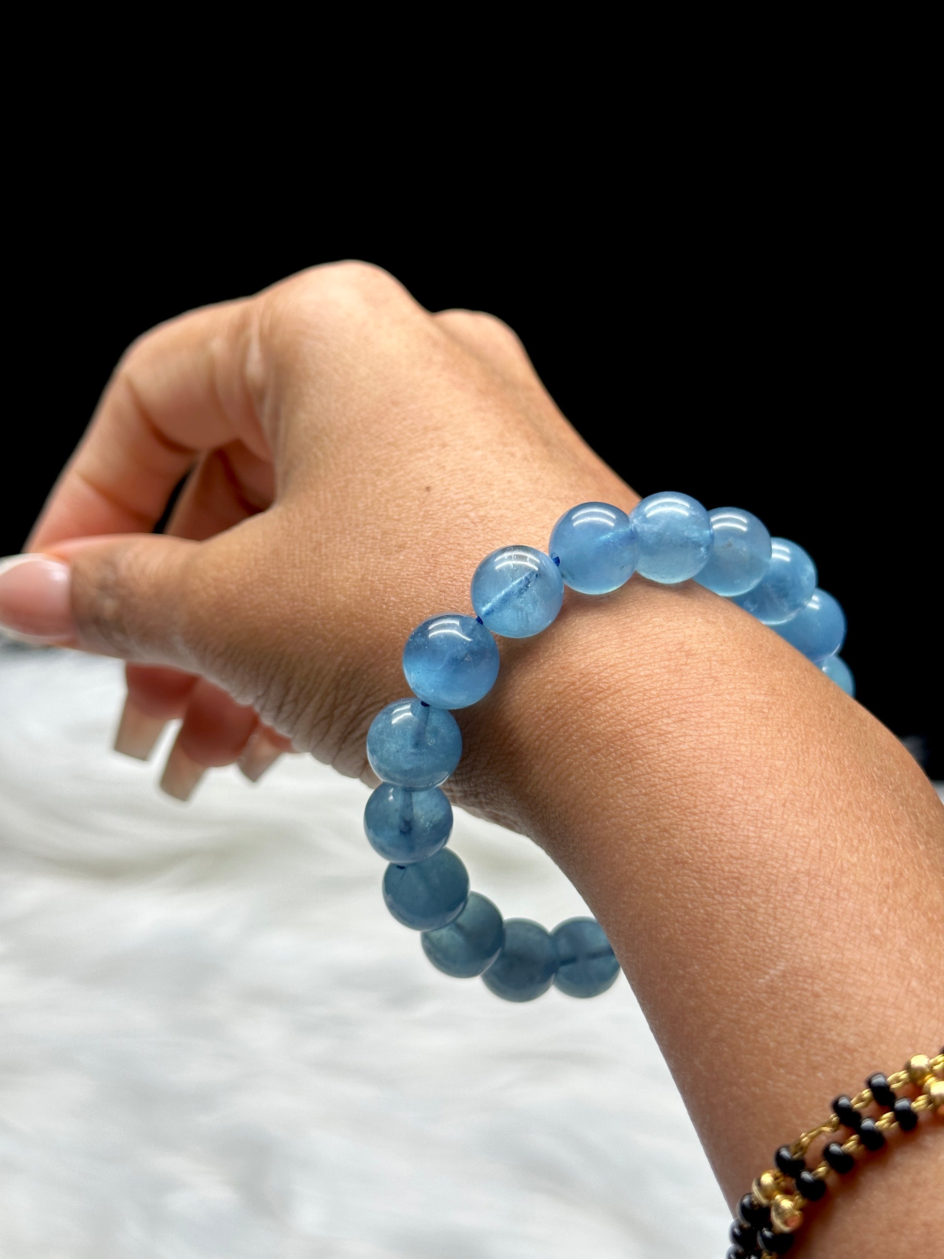 Gem Grade Aquamarine Crystal Bracelet – 12mm Beads, Premium Quality Healing Stone