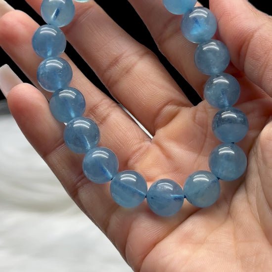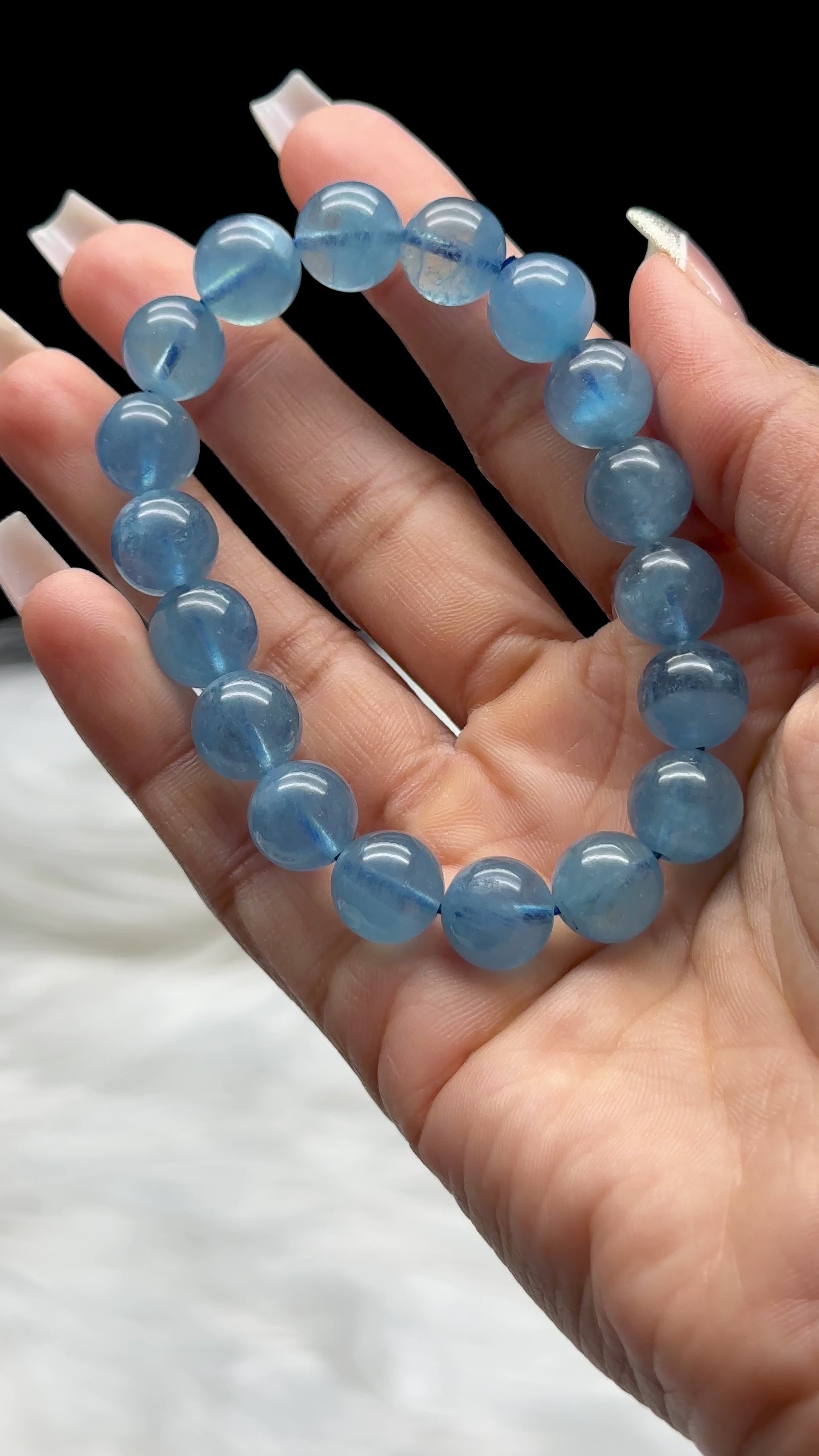 Each bracelet is hand-strung with care and intention, using authentic, gem-grade aquamarine—prized for its ocean-blue clarity and soothing energy. This bracelet is perfect for crystal lovers, collectors, and anyone seeking a calm and grounding presence in their daily life.