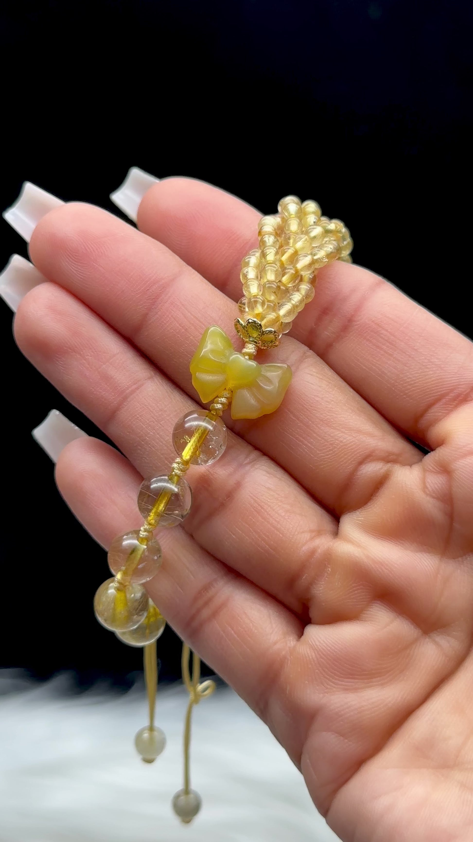 🛍️ You will receive one (1) Gold Rutile Quartz Bracelet with an Amber Butterfly Centerpiece
