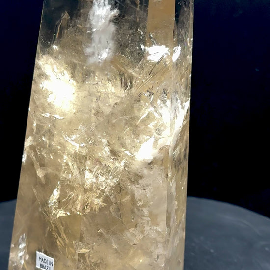 Experience the radiant energy of this AAA Grade Large Citrine Crystal Point/Tower, a true centerpiece for any crystal collection or spiritual space. Weighing an impressive 841 grams and standing 6.3 inches tall, this natural citrine tower is filled with vibrant internal rainbows, making it not just a powerful energy tool but a visually stunning display piece.