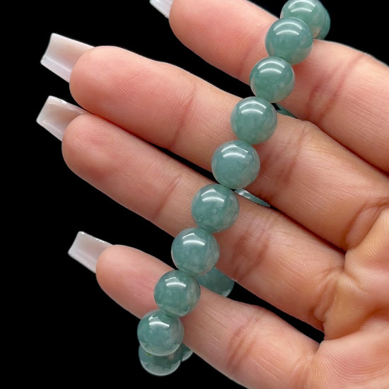 Embrace serene elegance with this High-Quality Blue Water Jadeite Bracelet, crafted from genuine 9mm jadeite beads in a rare and captivating blue water hue. Known for its calming and balancing properties, Blue Water Jadeite is a powerful stone for peace, wisdom, and emotional clarity.