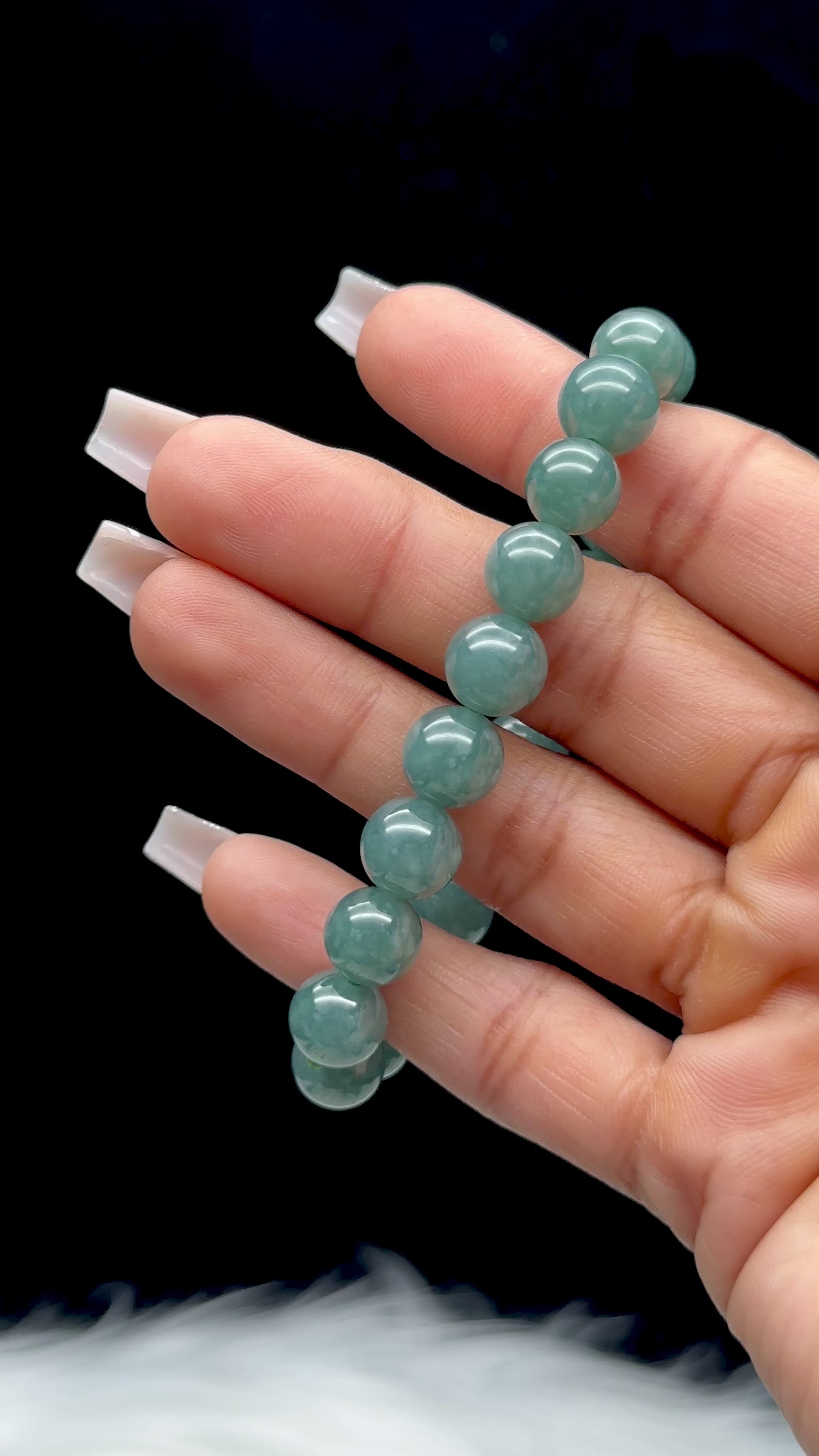 High-Quality Blue Water Jadeite Bracelet – 9mm Natural Jade Beads, Calming & Elegant