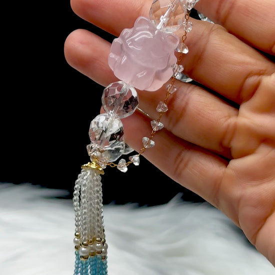 ✔ Pearl, Clear Quartz & Aquamarine Tassel – adds a touch of refined luxury