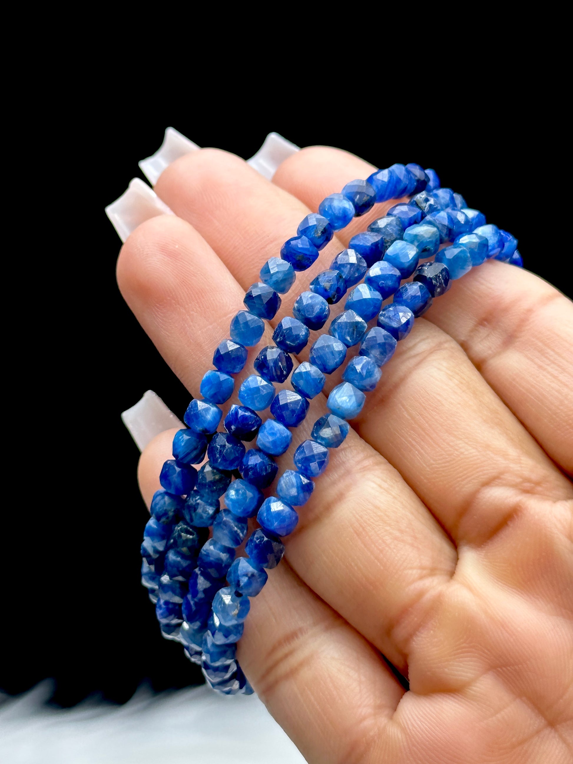 Elevate your energy and style with our High-Quality Faceted Kyanite Crystal Bracelet. This stunning bracelet features natural deep blue kyanite beads, precisely faceted for maximum sparkle and elegance. Hand-strung on a strong, stretchable cord, this bracelet combines comfort with high vibrational beauty.