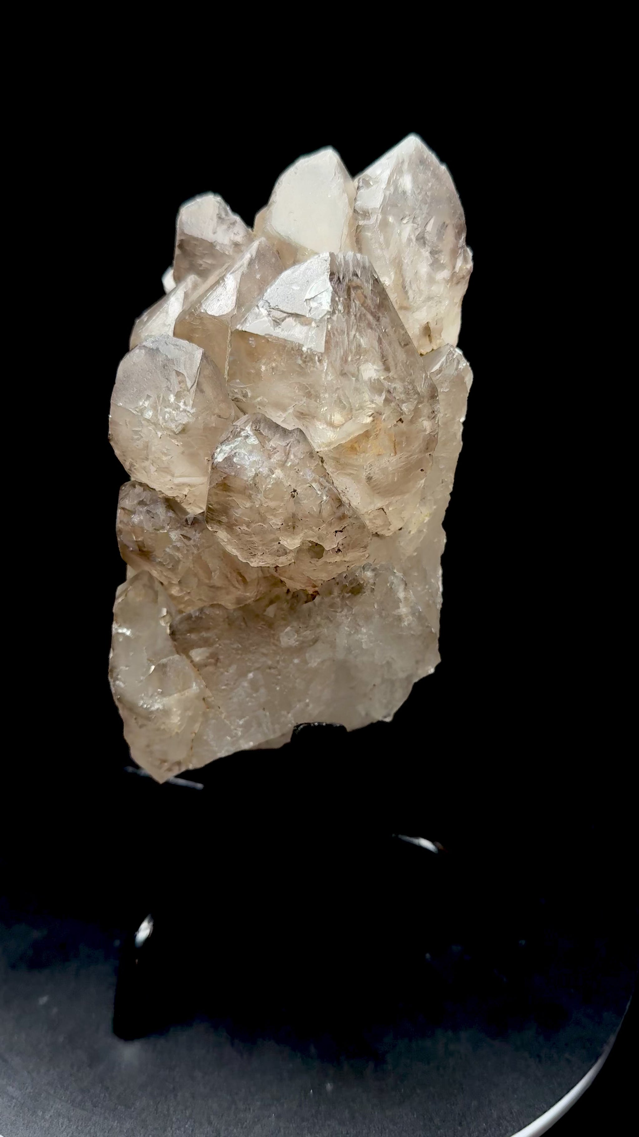 High Quality Large Elestial Smoky Quartz Cluster Specimen on Stand – 7.9 Inches Tall
