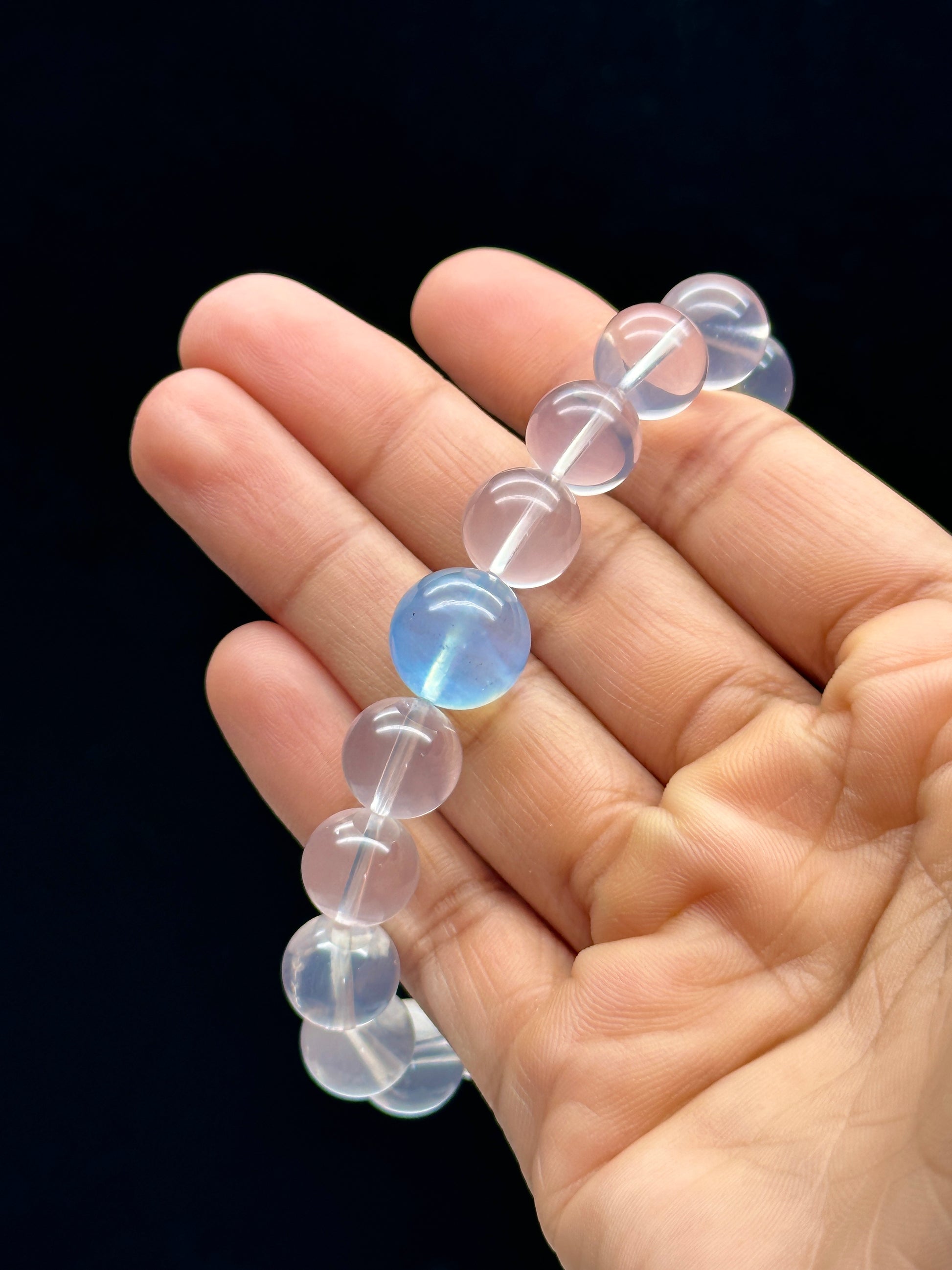 High Quality Rose Quartz & Aquamarine Crystal Bracelet – 10mm Beads, Madagascar Rose Quartz, Aquamarine Centerpiece