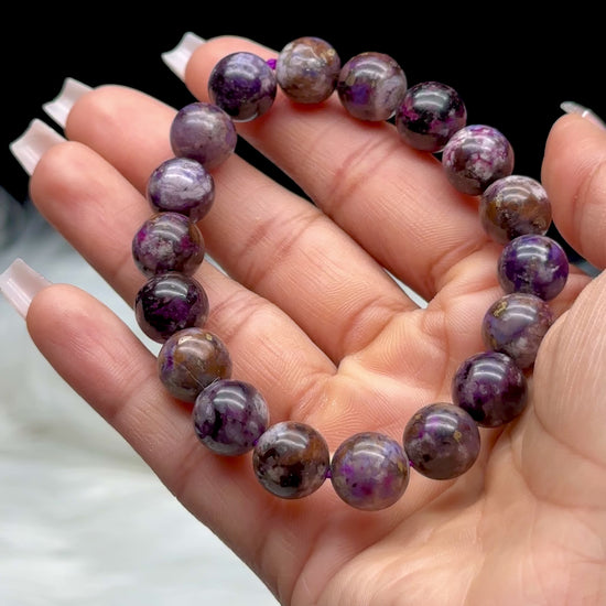 Sugilite is considered one of the most powerful stones for spiritual protection and deep healing. Its rich purple hues, paired with natural matrix patterns, make this bracelet as eye-catching as it is energetically potent.