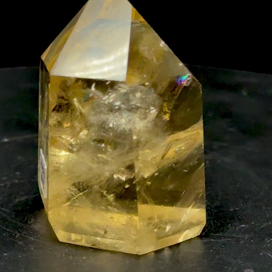 This piece is AAA grade, featuring exceptional clarity and warm golden tones, with stunning natural rainbow inclusions that reflect light beautifully. It is 100% natural – not heat-treated – offering the full metaphysical benefits of authentic citrine.