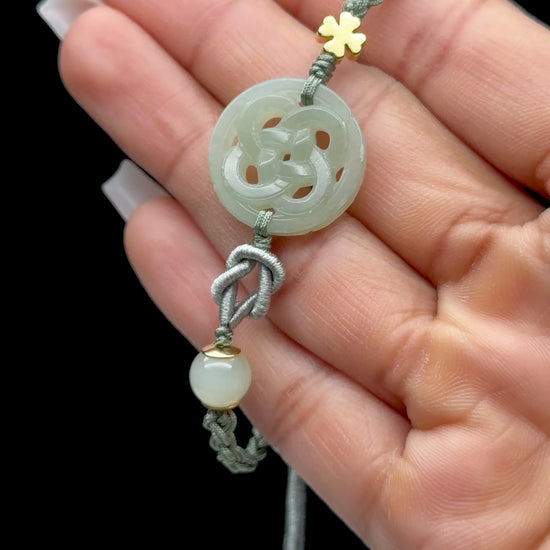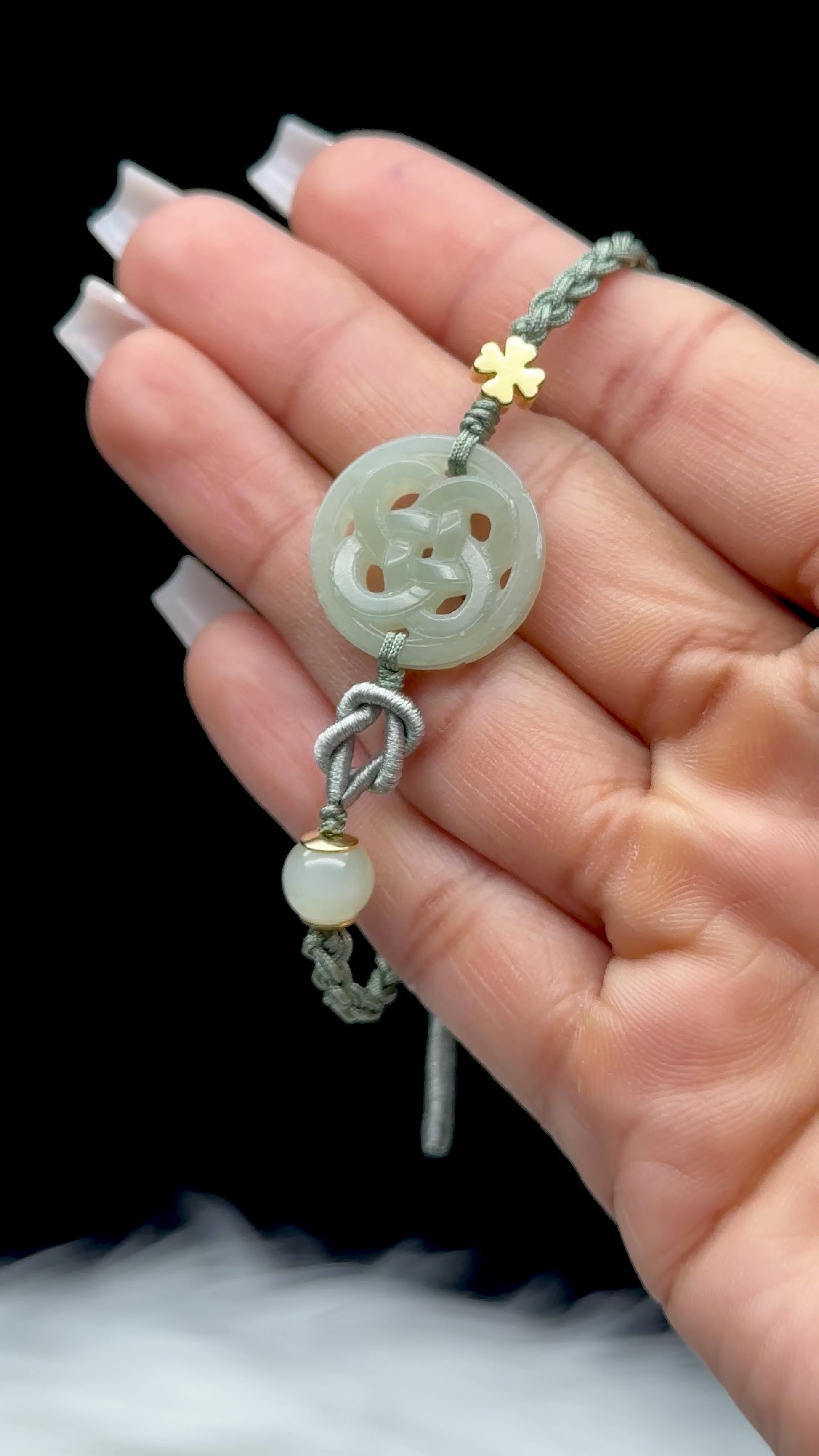 Natural Jadeite Feng Shui Coin Bracelet – Adjustable Thread, Wealth & Luck Bracelet