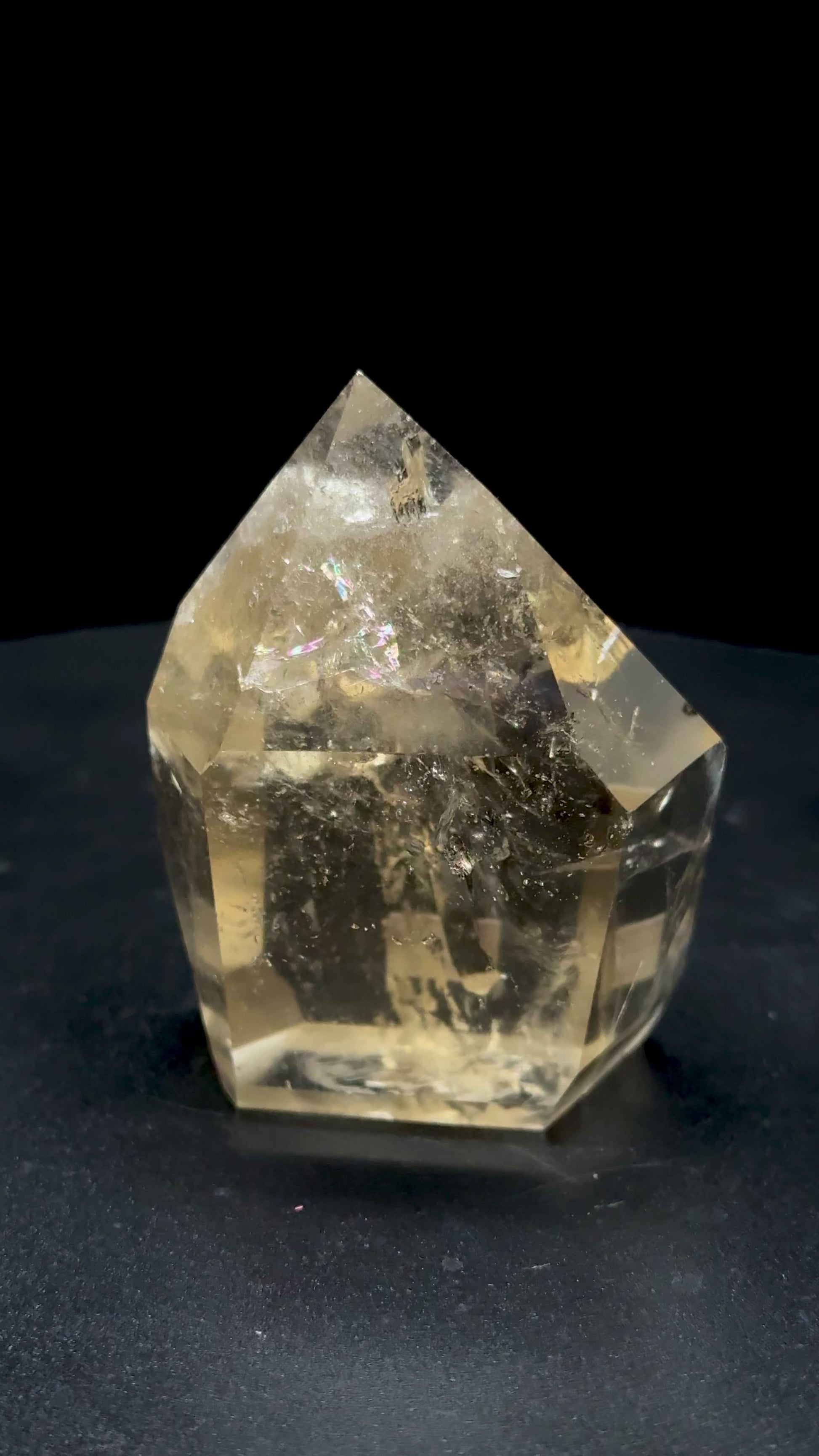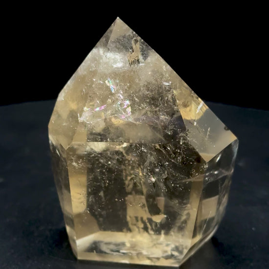 Discover a unique and powerful crystal with this Rare Natural Citrine Point featuring Tourmaline Inclusions. Weighing 131 grams and standing 2.8 inches tall, this AAA-grade crystal tower showcases a stunning fusion of golden citrine clarity and naturally embedded black tourmaline strands.