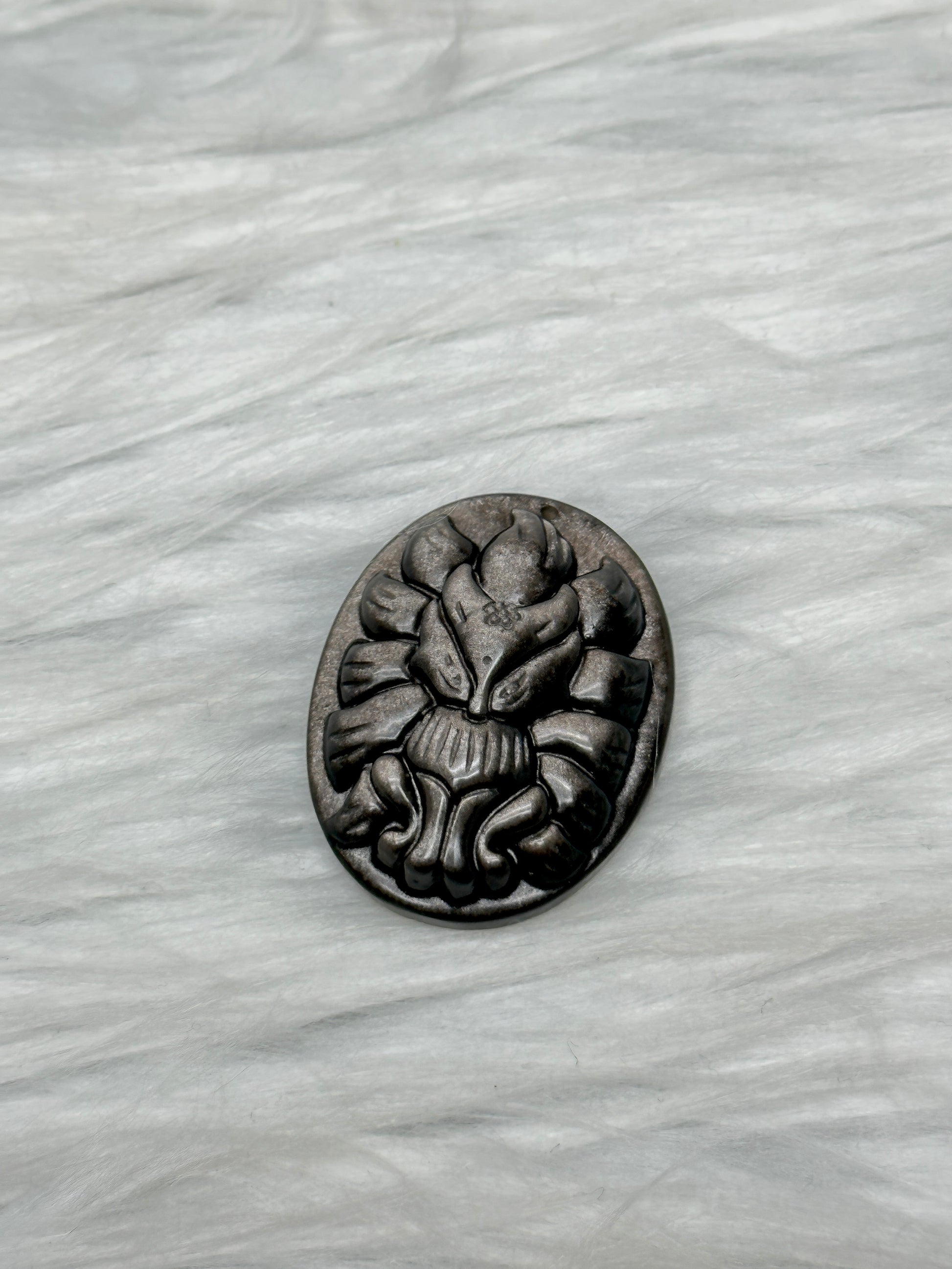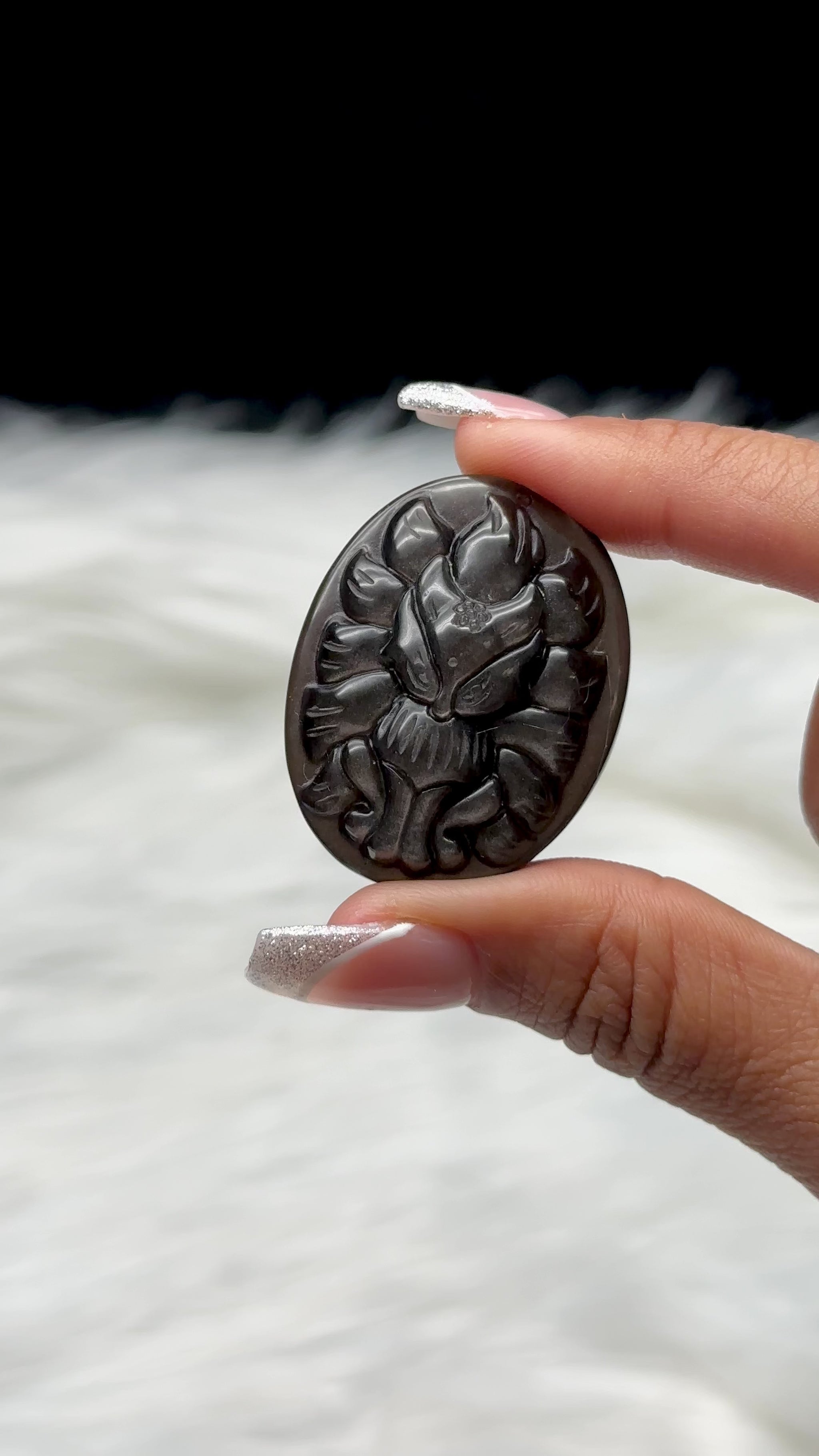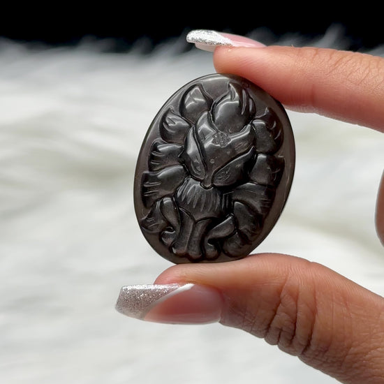 🛍️ You will receive one (1) Silver Sheen Obsidian Nine-Tail Fox Carving