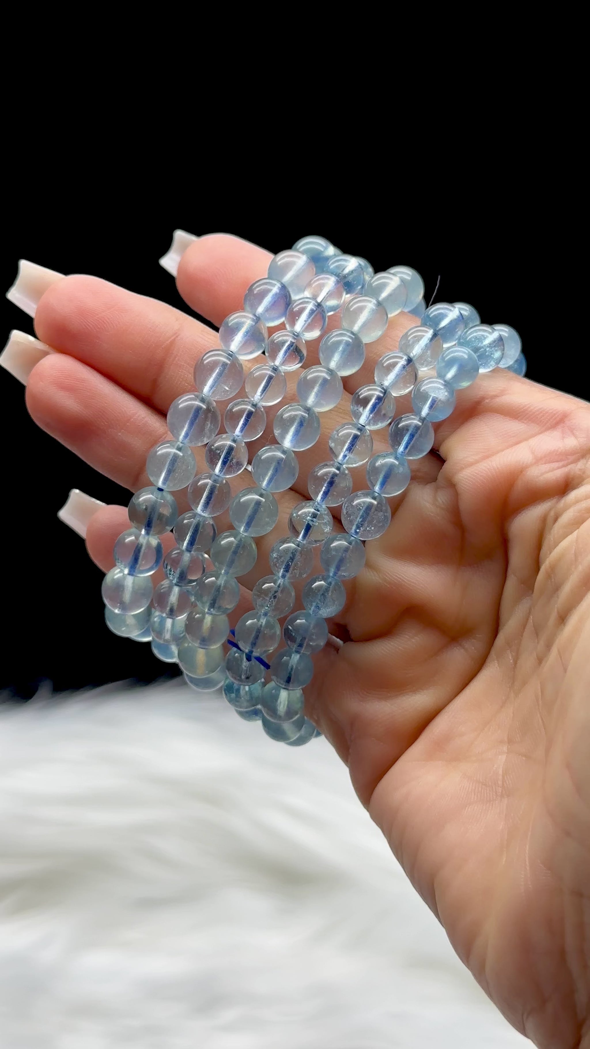 AAA Grade Aquamarine Crystal Bracelet – 7mm Natural Gemstone Beads, Calming & Elegant